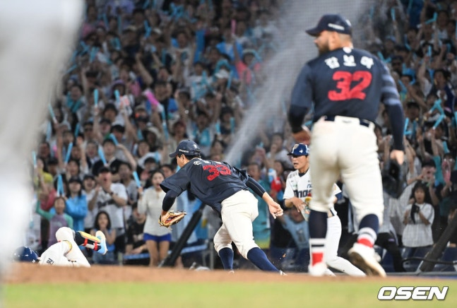 하지만 감보아는 5회말 볼넷 2개와 안타로 무사 만루 위기에 몰렸다. 여기서 박건우에게 우전 적시타를 맞아 동점을 허용했고, 1사 후 최정원이 친 느린 타구를 1루수 노진혁이 주춤하다가 악송구를 하는 바람에 내야안타와 함께 실책으로 2점이 들어왔다. 김휘집의 좌익수 쪽 적시타까지 나오면서 롯데는 5회에만 4점을 내줬다.