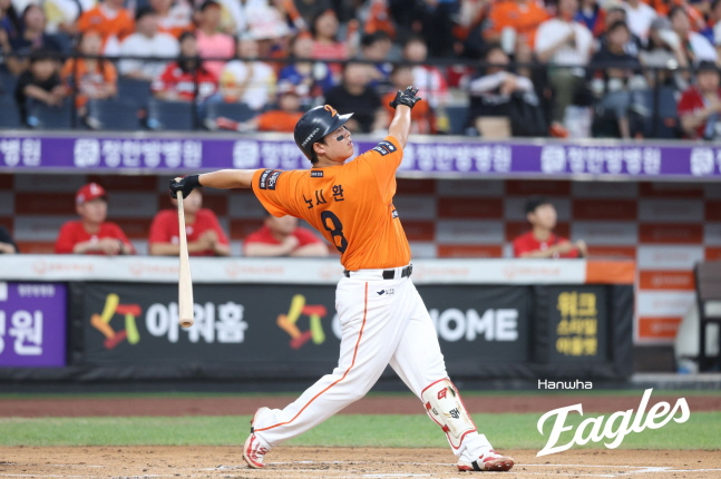 2019 2차 1라운드 신인으로 한화의 미래를 짊어질 거포 기대주로 주목 받은 노시환은 2021년부터 서서히 존재감을 뽐내더니 2023년 31개의 대포를 날려 홈런왕까지 차지했다. 그러나 지난해와 올 시즌 부침을 겪고 있다. 올 시즌엔 홈런은 23개로 많지만 타율이 0.234로 컨택트에서 어려움을 보이고 있다.