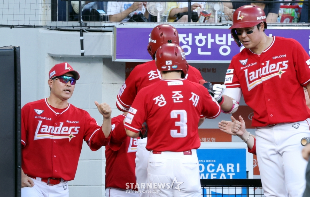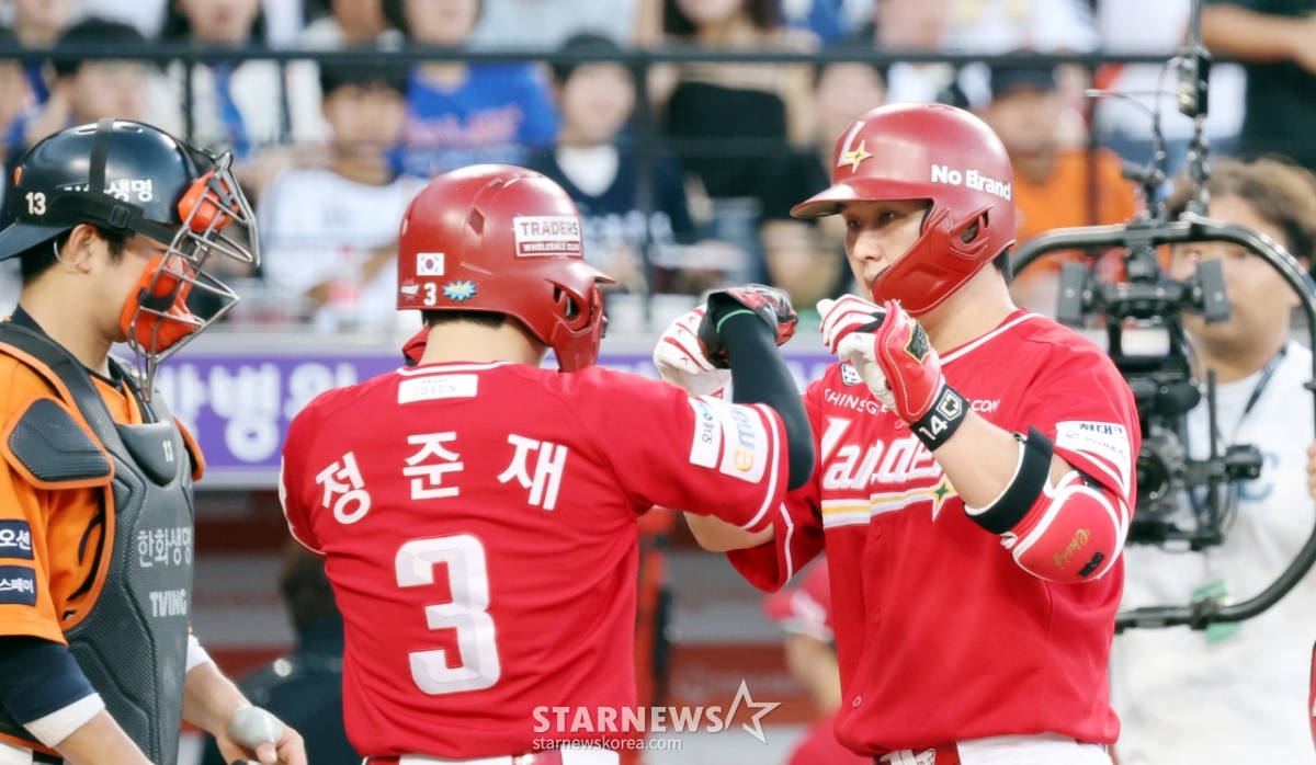 스포츠야구[한번에쓱]3회초 2사 1루 '와이스 선제 타격' 투런홈런 최정발행 : 2025.08.24 ・ 18:47대전=강영조 선임기자광고삭제SSG 3번타자 최정이 24일 대전한화생명볼파크에서 열린 SSG랜더스와 한화이글스 경기 3회초 2사 1루 한화 와이스를 상대로 좌월 선제투런홈런을 터트린 후 홈인하고 있다. 2025.08.24.<저작권자 © 스타뉴스, 무단전재 및 재배포 금지>와이스최정선제홈런대전볼파크추천 기사강영조 선임기자기자홈좋아요 스포츠-야구의 인기 급상승 뉴스스포츠-야구의 최신 뉴스
