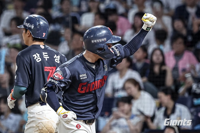 그래도 확실히 쐐기를 박으려는 듯 롯데는 계속해서 점수를 올렸다. 5회초에는 선두타자 이호준의 솔로포와 박찬형의 좌중간 적시 2루타로 2점을 더했다. 6회에도 무사 1, 3루에서 나승엽의 병살타가 나왔으나 그 사이 3루 주자가 득점했다.