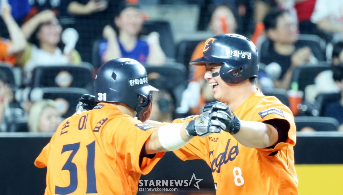 스포츠야구[포토]손아섭과 자축, 노시환발행 : 2025.08.24 ・ 19:59대전=강영조 선임기자한화 4번타자 노시환이 24일 대전한화생명볼파크에서 열린 SSG랜더스와 한화이글스 경기 5회말 2사 1루에서 좌중월 2점홈런을 터트린 후 홈인하고 있다. 2025.08.24.<저작권자 © 스타뉴스, 무단전재 및 재배포 금지>손아섭시환대전볼파크랜더스한화이글스추천 기사강영조 선임기자기자홈좋아요 스포츠-야구의 인기 급상승 뉴스스포츠-야구의 최신 뉴스