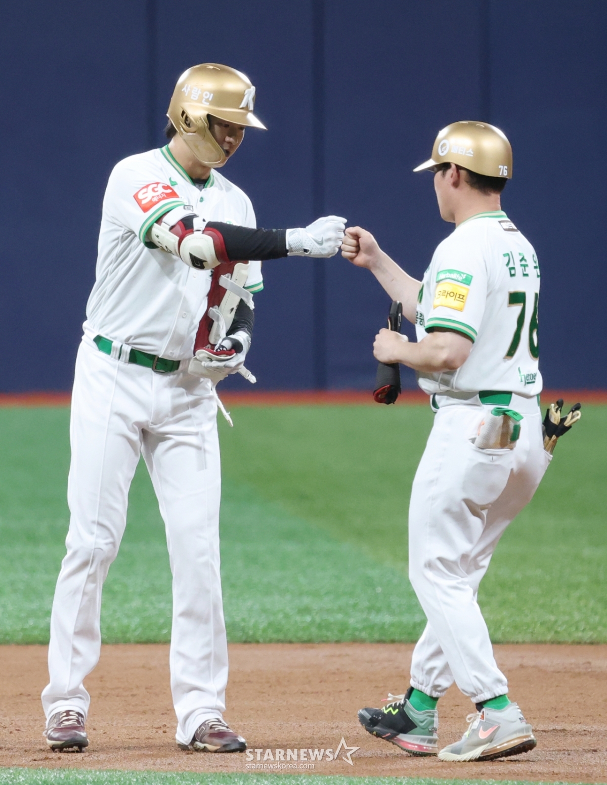 스포츠야구[포토] 박주홍 '괴물 상대로 선제 1타점 2루타'발행 : 2025.08.26 ・ 19:31고척=김진경 대기자광고삭제2025 신한 SOL Bank KBO리그키움 히어로즈 대 한화 이글스 경기가 26일 서울 고척스카이돔에서 열렸다.키움 박주홍이 1회말 1사 1루에서 선제 1타점 좌중간 2루타를 날리고 출루한 후 김준완 코치의 환영을 받고 있다.<저작권자 © 스타뉴스, 무단전재 및 재배포 금지>프로야구KBO시구승요승리요정치어리더추천 기사김진경 대기자기자홈좋아요 스포츠-야구의 인기 급상승 뉴스스포츠-야구의 최신 뉴스