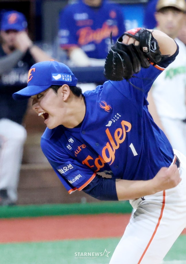 그 마음을 아는지, 문동주는 1회부터 강속구를 뿌리며 키움 타선을 압도했다. 수비 실책으로 1실점 한 1회말 1사 1루에서 이주형에게 시속 155㎞ 직구 3개를 스트라이크존 상단에 연거푸 꽂았다. 이 공에 이주형은 3연속 헛스윙하며 삼진을 당했다. 유일한 외국인 타자 카디네스 역시 초구 시속 153㎞ 직구에 3루 파울플라이로 물러났다.
