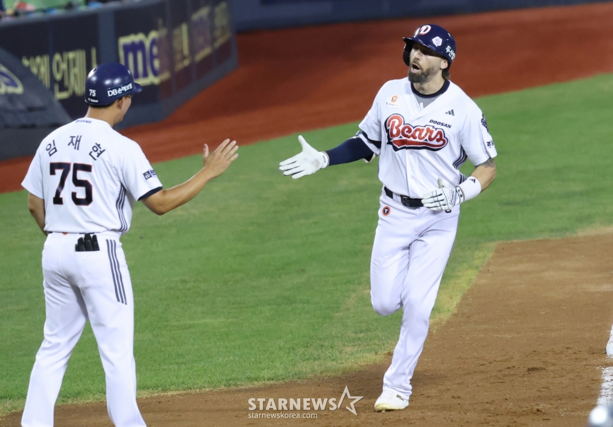 스포츠야구[포토] 케이브 '복수혈전 투런포'발행 : 2025.08.28 ・ 19:17잠실=김진경 대기자2025 신한 SOL Bank KBO리그 두산 베어스 대 삼성 라이온즈 경기가 28일 서울 잠실야구장에서 열렸다.두산 케이브가 2회말 2사 1루에서 좌월 2점 홈런을 날리고 홈인하고 있다.<저작권자 © 스타뉴스, 무단전재 및 재배포 금지>프로야구KBO시구승요승리요정치어리더추천 기사김진경 대기자기자홈좋아요 스포츠-야구의 인기 급상승 뉴스스포츠-야구의 최신 뉴스