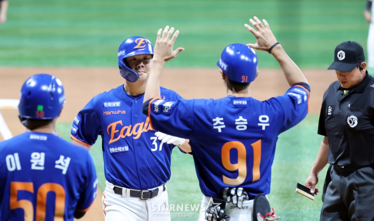 스포츠야구[한번에쓱]'하영민 상대로' 기선제압 투런홈런 한화 김인환발행 : 2025.08.28 ・ 19:17고척=강영조 선임기자광고삭제한화 2번타자 김인환이 28일 고척스카이돔에서 열린 2025KBO리그 한화이글스와 키움히어로즈의 경기 1회초 무사 1루에서 하영민을 상대로 선제 투런홈런을 터트린 후 홈인하고 있다. 2025.08.28.<저작권자 © 스타뉴스, 무단전재 및 재배포 금지>김인환상대홈런한화고척스카이추천 기사강영조 선임기자기자홈좋아요 스포츠-야구의 인기 급상승 뉴스스포츠-야구의 최신 뉴스