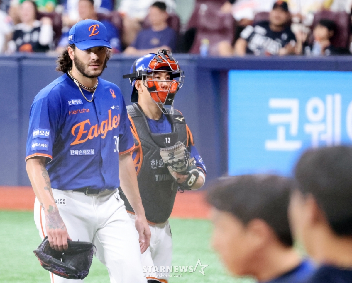 스포츠야구[포토]'1회초 무사만루위기로' 투구수가 많은 폰세발행 : 2025.08.28 ・ 19:57고척=강영조 선임기자광고삭제한화 선발투수 폰세가 28일 고척스카이돔에서 열린 2025KBO리그 한화이글스와 키움히어로즈의 경기에서 3회말 수비를 마치고 더그아웃으로 향하고 있다. 많은 MLB 스카우터들이 고척돔을 찾아 폰세와 송성문을 면밀히 살피고 있다. 2025.08.28.<저작권자 © 스타뉴스, 무단전재 및 재배포 금지>폰세고척선발투수스카이한화이글스히어로즈추천 기사강영조 선임기자기자홈좋아요 스포츠-야구의 인기 급상승 뉴스스포츠-야구의 최신 뉴스
