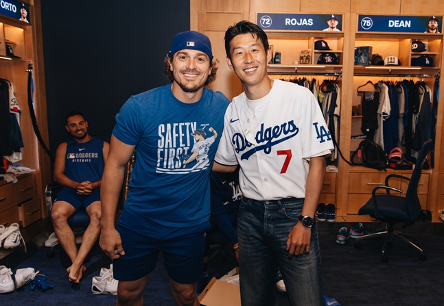 지난 26일 다저스 시구를 펼친 방탄소년단(BTS) 뷔(30)와 오타니가 기념 촬영을 한 것과 비교하면 다소 아쉽긴 하지만, 일정상 운이 어쩔 수 없었다. 대신 손흥민은 스넬을 비롯해 프레디 프리먼, 야마모토 요시노부, 키케 에르난데스, 데이브 로버츠 감독과 투샷을 남기기도 했다. 구단이 공개한 영상에는 한국계 야수인 토미 에드먼과 손흥민이 대화를 나누는 모습도 있었다.