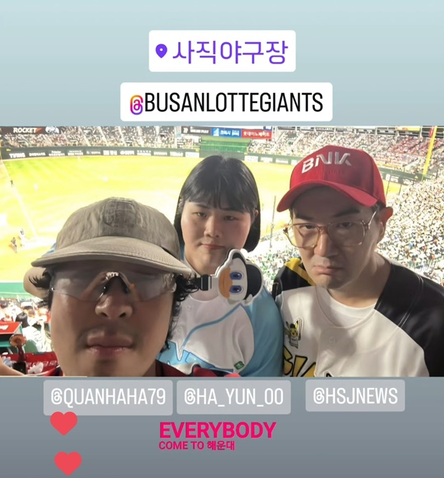 배우 한상진(47)과 가수 하하(46), 유도선수 김하윤(25)은 29일 열린 롯데 자이언츠와 두산 베어스와 2025 신한 SOL 뱅크 KBO 리그 정규시즌 경기를 보기 위해 부산 사직야구장을 찾았다.