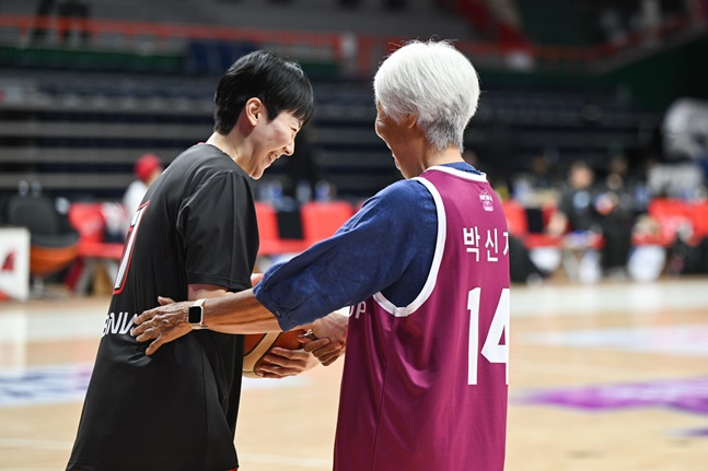 이날 박신자 여사는 BNK와 후지쯔 레드웨이브(일본)의 개막 경기를 앞두고 시투를 진행했다. 그는 "아까 연습했는데, 골대가 높다고 생각했는데 높아서 먼저 하니까 림 밑을 맞더라"라며 아쉬워했다.