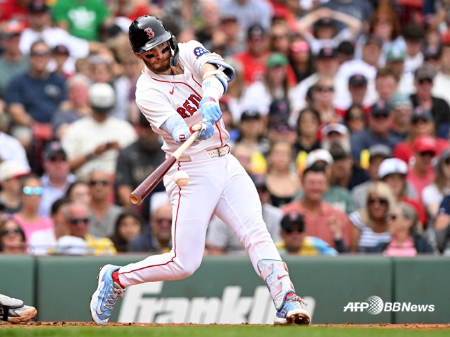 보스턴 레드삭스의 유격수 트레버 스토리(33)는 2일(한국시간) 미국 매사추세츠주 보스턴의 펜웨이 파크에서 열린 클리블랜드 가디언스와 2025 MLB 정규시즌 홈경기에서 행운의 홈런을 얻어냈다.
