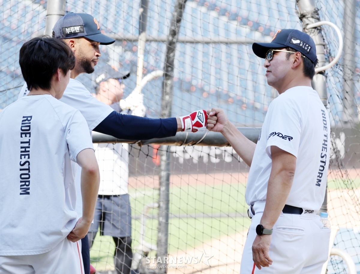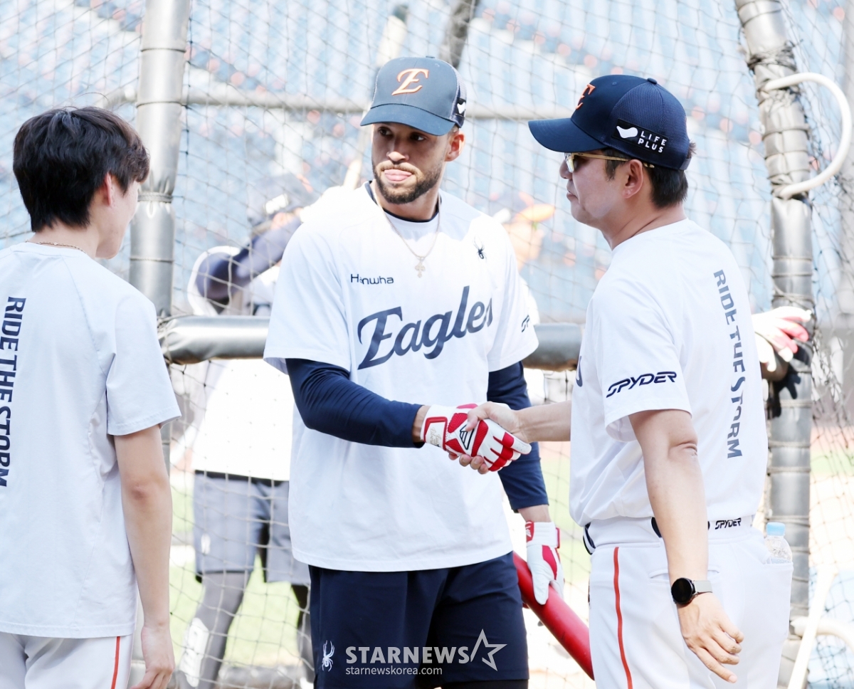 스포츠야구[포토]'지풍이형 고맙다고 통역 좀' 리베라토발행 : 2025.09.02 ・ 16:23대전=강영조 선임기자한화 외국인타자 리베라토가 2일 대전한화생명볼파크에서 열리는 2025KBO리그 한화이글스와 KIA타이거즈 경기에 앞서 훈련을 하던 중 이지풍 수석트레이너와 주먹을 부딪히며 친근감을 표시하고 있다. 2025.09.02.<저작권자 © 스타뉴스, 무단전재 및 재배포 금지>리베라토대전볼파크한화이글스이지풍토지추천 기사강영조 선임기자기자홈좋아요 스포츠-야구의 인기 급상승 뉴스스포츠-야구의 최신 뉴스