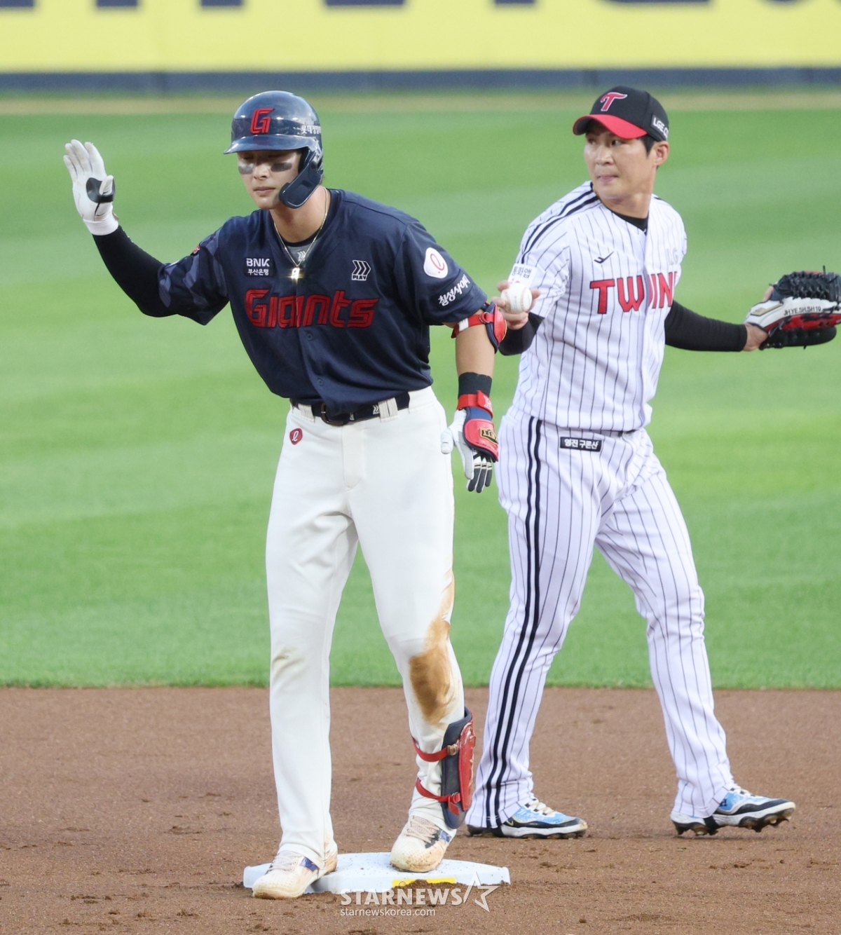 스포츠야구[포토] 윤동희 '2루타로 시동 걸었다'발행 : 2025.09.02 ・ 19:15잠실=김진경 대기자2025 신한 SOL Bank KBO리그 LG 트윈스 대 롯데 자이언츠 경기가 2일 서울 잠실야구장에서 열렸다롯데 윤동희가 1회초 사에서 우월 2루타를 날리고 출루한 후 세리머니를 하고 있다.<저작권자 © 스타뉴스, 무단전재 및 재배포 금지>프로야구KBO시구승요오스틴홍창기추천 기사김진경 대기자기자홈좋아요 스포츠-야구의 인기 급상승 뉴스스포츠-야구의 최신 뉴스