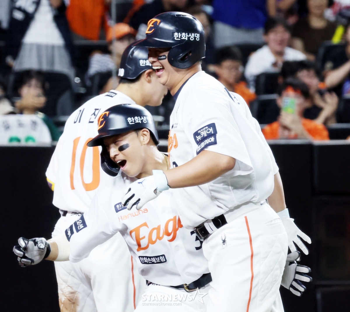 스포츠야구[포토]'손아섭도 신났다!' 5회말 역전 스리런홈런 노시환발행 : 2025.09.02 ・ 20:19대전=강영조 선임기자한화 4번타자 노시환이 2일 대전한화생명볼파크에서 열리는 2025KBO리그 한화이글스와 KIA타이거즈 경기 5회말 1사 1루에서 KIA 선발투수 김도현을 상대로 역전 스리런홈런을 터트린 후 홈인하고 있다. 2025.09.02.<저작권자 © 스타뉴스, 무단전재 및 재배포 금지>손아섭역전스리홈런시환대전추천 기사강영조 선임기자기자홈좋아요 스포츠-야구의 인기 급상승 뉴스스포츠-야구의 최신 뉴스