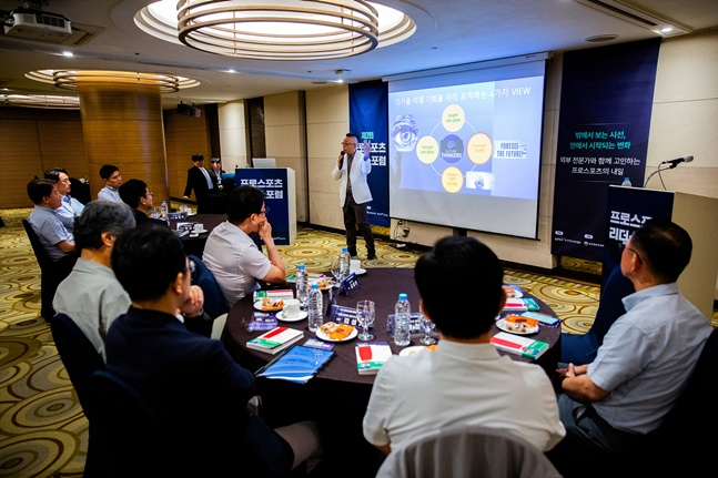 '프로스포츠 리더스 포럼'은 올해 총 4차례 운영되며 매 회차 스포츠 산업의 주요 이슈를 중심으로 연사의 강연과 소통의 장이 마련된다. 제1회엔 노희영 전 CJ제일제당 고문(현 식음연구소·비앤어스 대표), 제2회 때는 마인드 마이너 송길영 작가가 연사로 나섰다.
