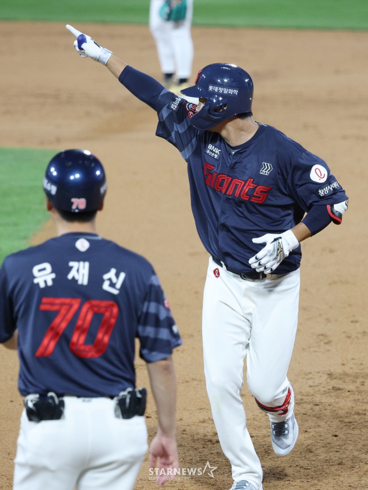 스포츠야구[포토] 손호영 '눈에는 눈, 만루엔 만루'발행 : 2025.09.03 ・ 19:17조회수 :수정 : 2025.09.03 ・ 19:28수원=김진경 대기자2025 신한 SOL Bank KBO리그 KT 위즈 대 롯데 자이언츠 경기가 3일 수원 KT위즈파크에서 열렸다.롯데 손호영이 2회초 1사 만루에서 2타점 적시타를 날리고 출루한 후 세리머니를 하고 있다.<저작권자 © 스타뉴스, 무단전재 및 재배포 금지>브리핑추천 기사김진경 대기자기자홈좋아요스포츠-야구의 인기 급상승 뉴스스포츠-야구의 최신 뉴스AD