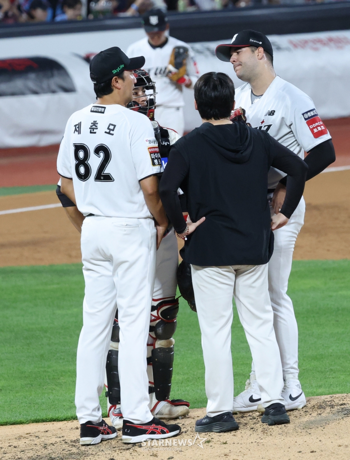스포츠야구[포토] 헤이수스 '마음 다잡을게요'발행 : 2025.09.03 ・ 19:35수원=김진경 대기자2025 신한 SOL Bank KBO리그 KT 위즈 대 롯데 자이언츠 경기가 3일 수원 KT위즈파크에서 열렸다.KT 선발 헤이수스가 흔들리는 모습을 보이자 제춘모 코치가 마운드애 올라가 진정시키고 있다.<저작권자 © 스타뉴스, 무단전재 및 재배포 금지>프로야구KBO시구승요박세웅전준우추천 기사김진경 대기자기자홈좋아요 스포츠-야구의 인기 급상승 뉴스스포츠-야구의 최신 뉴스
