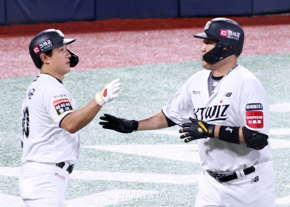 스포츠야구[포토] 장성우-황재균 '공포의 중심 타선'발행 : 2025.09.03 ・ 20:15수원=김진경 대기자2025 신한 SOL Bank KBO리그 KT 위즈 대 롯데 자이언츠 경기가 3일 수원 KT위즈파크에서 열렸다.KT 장성우가 5회말 무사에서 좌중월 1점 홈런을 날리고 홈인하고 있다.<저작권자 © 스타뉴스, 무단전재 및 재배포 금지>프로야구KBO시구승요박세웅전준우추천 기사김진경 대기자기자홈좋아요 스포츠-야구의 인기 급상승 뉴스스포츠-야구의 최신 뉴스