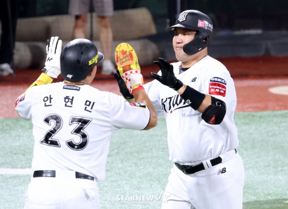 스포츠야구[포토] 장성우 연타석 홈런에 거인 침몰발행 : 2025.09.03 ・ 20:57수원=김진경 대기자2025 신한 SOL Bank KBO리그 KT 위즈 대 롯데 자이언츠 경기가 3일 수원 KT위즈파크에서 열렸다.KT 장성우가 6회말 2사 2루에서 좌월 2점 홈런(연타석)을 날리고 홈인하고 있다.<저작권자 © 스타뉴스, 무단전재 및 재배포 금지>프로야구KBO시구승요박세웅전준우추천 기사김진경 대기자기자홈좋아요 스포츠-야구의 인기 급상승 뉴스스포츠-야구의 최신 뉴스