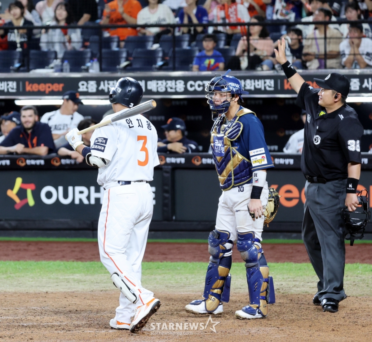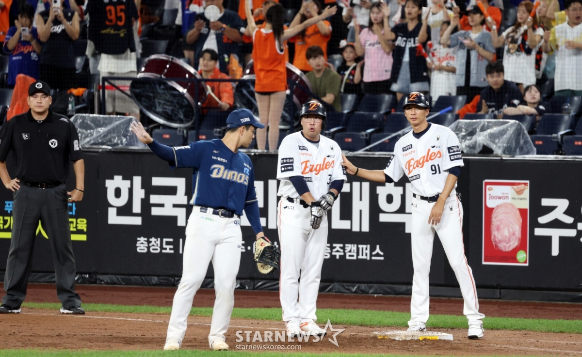 한화 안치홍이 3일 대전한화생명볼파크에서 열린 2025KBO리그 한화이글스와 NC다이노스 경기 10회말 1사 3루에서 대타로 출전했다 고의사구로 출루하고 있다. 2025.09.03.