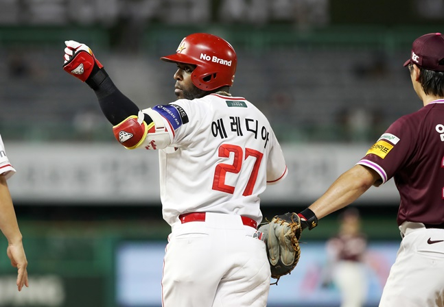 에레디아는 3일 광주-기아 챔피언스필드에서 열린 KIA 타이거즈와 원정경기에서 5타수 3안타 1득점 맹타를 휘둘렀다. 팀은 2-1로 값진 승리를 거뒀고 공동 4위 그룹 삼성 라이온즈, KT 위즈와 승차를 1.5경기 차로 벌릴 수 있었다.