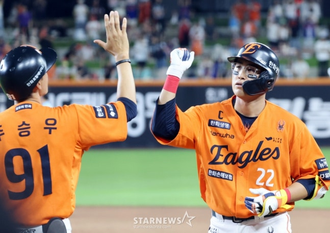 김경문 감독은 "(노)시환이가 그동안 혼자서 힘든 상황에서 잘해줬다. 큰 형(채은성이) 돌아왔으니 조금 더 홀가분하지 않을까 싶다. 어려울 때보다 조금 더 편해질 것 같다. 좋은 흐름을 이어가서 남은 경기를 잘 마무랬으면 좋겠다"고 덧붙였다,