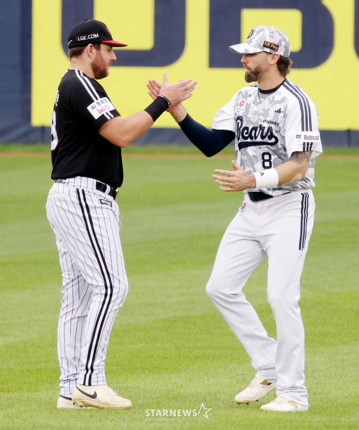 스포츠야구[포토] 오스틴-케이브 '10일에 다시 만나야 하나?'발행 : 2025.09.06 ・ 17:32잠실=김진경 대기자2025 신한 SOL Bank KBO리그 두산 베어스 대 LG 트윈스 경기가 6일 서울 잠실야구장에서 열렸다.LG 오스틴과 두산 케이브가 외야에서 만나 선전을 다짐하고 있다.<저작권자 © 스타뉴스, 무단전재 및 재배포 금지>프로야구KBOLG_트윈스두산_베어스공군의장대오스틴추천 기사김진경 대기자기자홈좋아요 스포츠-야구의 인기 급상승 뉴스스포츠-야구의 최신 뉴스