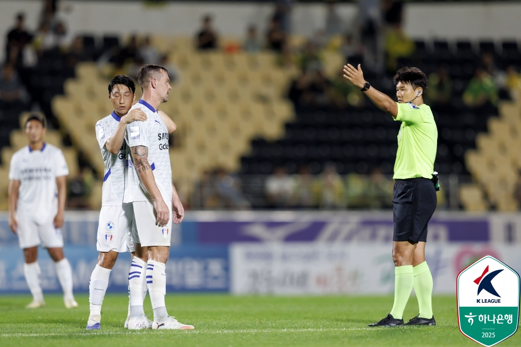 직전 경기에 이어 2경기 연속 퇴장이 나오면서 경기가 꼬였다. 수원은 지난달 30일 수원월드컵경기장에서 열린 성남FC전에서도 0-1로 뒤지던 후반 3분 조윤성의 퇴장으로 수적 열세에 몰렸다. 상대(김정현)의 발목이 꺾일 만큼 거친 태클에 결국 레드카드가 나왔다. 당시 주심은 조윤성에게 경고를 줬지만, 비디오판독심판(VAR) 권고로 온 필드 리뷰를 거쳐 퇴장으로 정정했다. 그나마 수원은 상대 퇴장 이후 추가골을 실점해 0-2로 뒤지다 추가시간에만 2골을 넣으며 극적으로 승점 1을 챙겼다. 다만 이번 부산 원정에선 성남전과 같은 행운이 따르지 않았다.