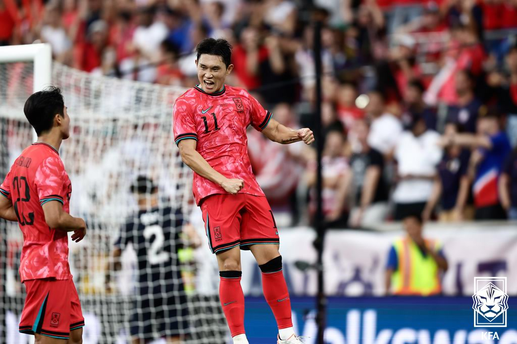 홍명보(56) 감독은 미국전에서 스리백을 가동했다. 주장 손흥민(로스앤젤레스FC)이 원톱에 서고 이재성(마인츠)과 이동경이 뒤를 받쳤다. 중앙 수비진에서는 김민재(바이에른 뮌헨)가 중심을 맡고 김주성(산프레체 히로시마)과 이한범(미트윌란)이 호흡을 맞췄다.