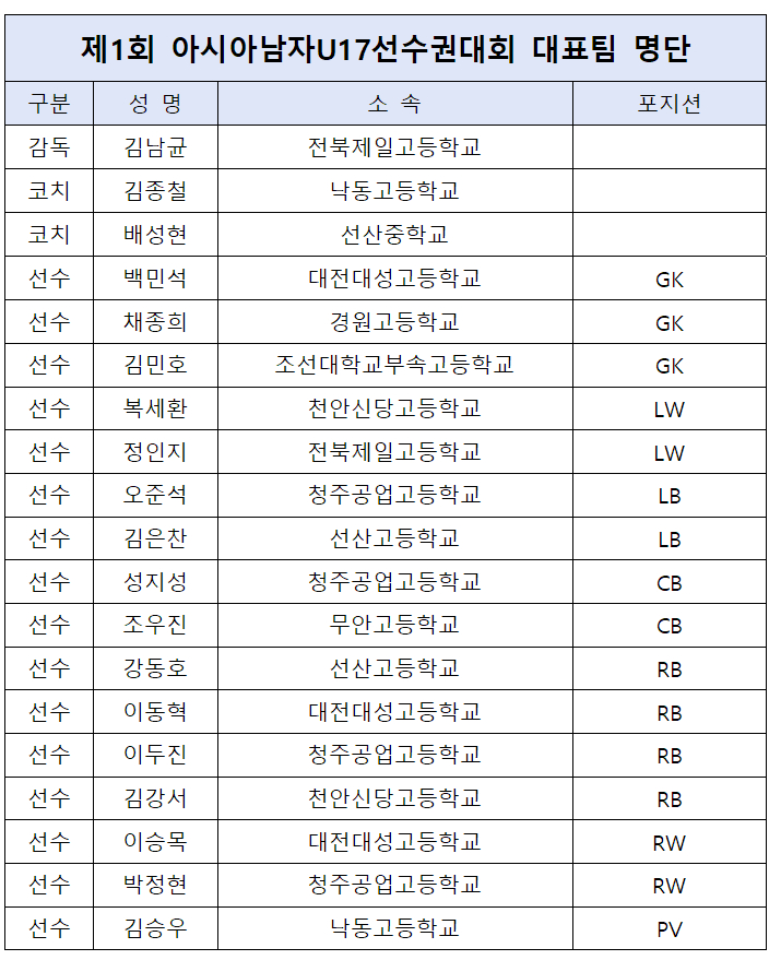 김남균 남자 U17 대표팀 감독은 "카타르에서 진행되는 사전훈련을 통해 팀의 조직력을 잘 다듬어 조별리그 첫 경기부터 최선을 다할 수 있도록 준비하겠다"고 각오를 밝혔다.
