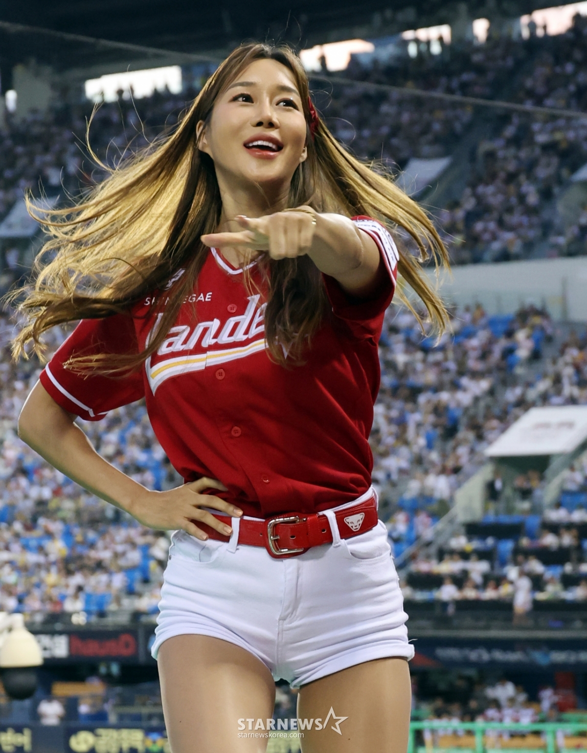 SSG 베테랑 치어리더 배수현, 이수진, 인지현과 이연진 7일 잠실야구장에서 열리는 2025KBO리그 LG트윈스와 SSG랜더스의 경기 만원관중속에서 열띤 응원을 펼치고 있다. 2025.09.07.