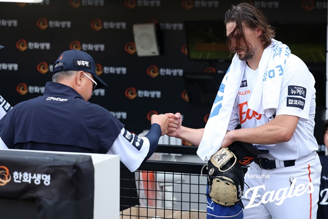 김 감독의 지적대로 와이스는 이번 시즌 155⅓이닝으로 본인의 야구 인생에서 가장 많은 이닝을 던지고 있다. 야구 통계 사이트 베이스볼 레퍼런스에 따르면 와이스는 지난 2024시즌 한화에서 91⅔이닝, 미국 독립 리그에서 45⅔이닝으로 도합 137⅓이닝으로 커리어 최다 이닝이었지만 이번 시즌 18이닝을 더 던지고 있다. 포스트시즌까지 치러야 하는 한화 입장에서 와이스의 투구 이닝 관리는 필수다. 이제 한화는 어느 정도 포스트시즌 모드로 돌입한 모양새다. 와이스가 오는 9일 롯데전서 어떤 모습을 보일지도 관심이다.