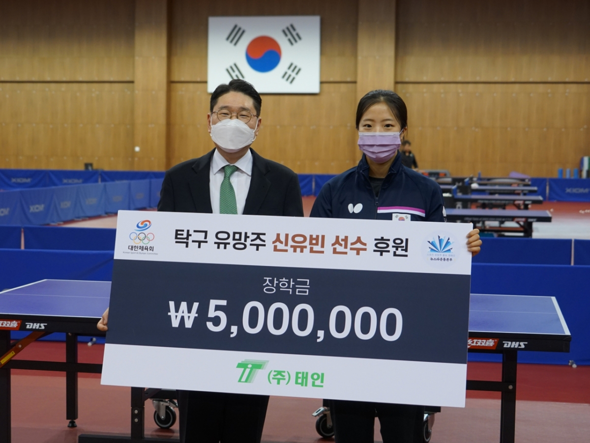 대한체육회(회장 유승민)가 9일 진천 국가대표선수촌에서 태인 체육 장학금 후원 협약식을 개최했다.
