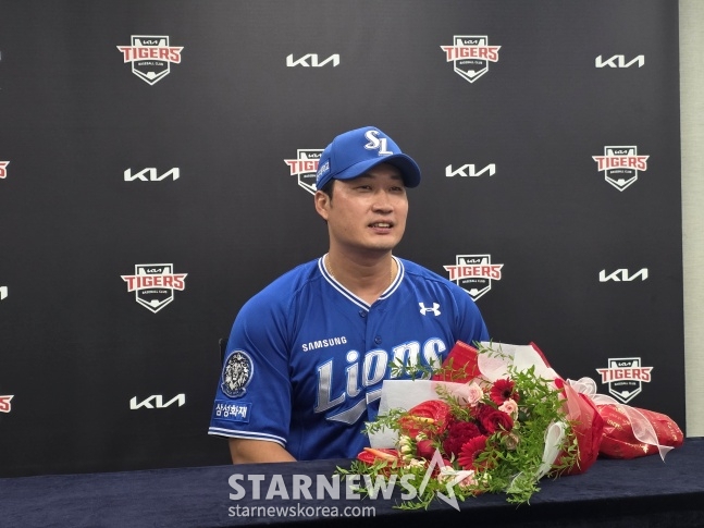오승환은 10일 광주광역시 북구의 광주-기아챔피언스필드에서 열린 2025 신한 SOL Bank KBO 리그 정규시즌 KIA 타이거즈와 방문 경기를 앞두고 "광주에서 의미 있는 기록을 많이 세웠는데, 그때마다 KIA 팬분들께서 많은 응원과 함께 박수를 많이 쳐주신 기억이 난다. 정말 감사하다"고 말했다.