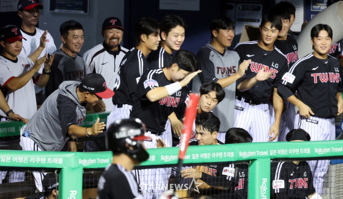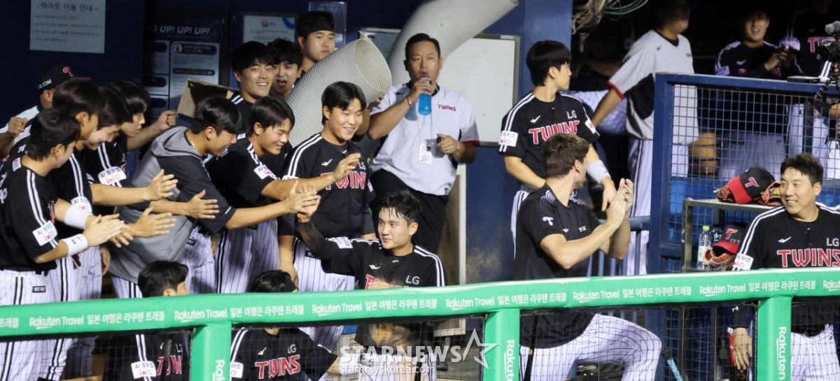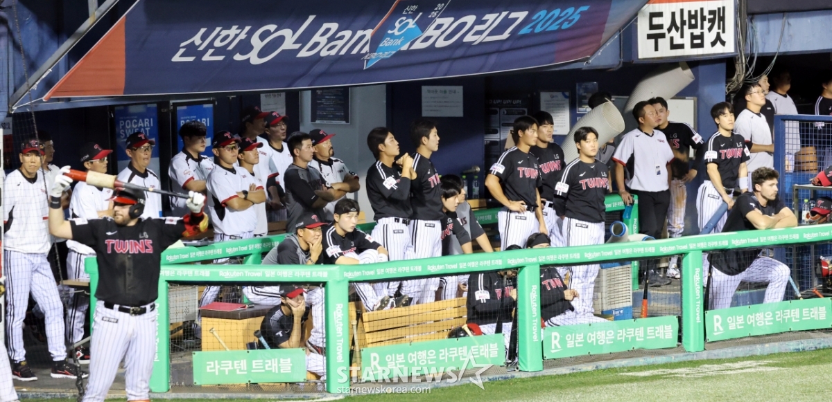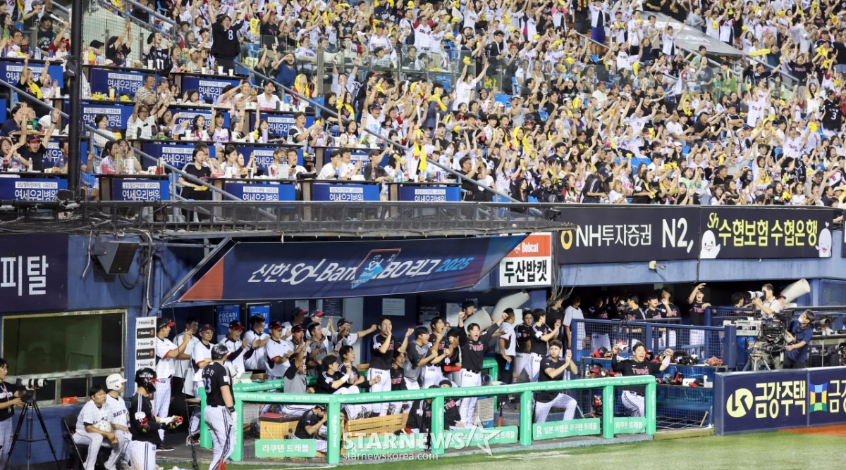 환호성이 터진 LG더그아웃과 엘팬응원석