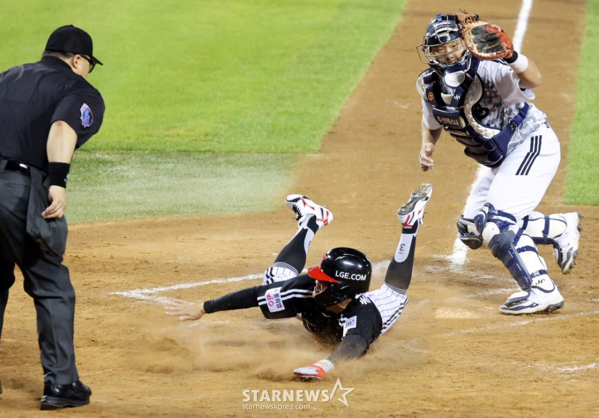 거의 비디오판독 시간이 끝나갈 무렵 심판은 아웃에서 세이프로 판정을 번복했다. 3루 LG 더그아웃과 응원석에서는 열화와 같은 함성이 쏟아졌다. 2-3으로 추격한 LG 이어진 공격에서 오스틴의 동점타가 터졌고 두산은 선발투수 콜어빈을 이병헌으로 교체했다. 2025.09.09.