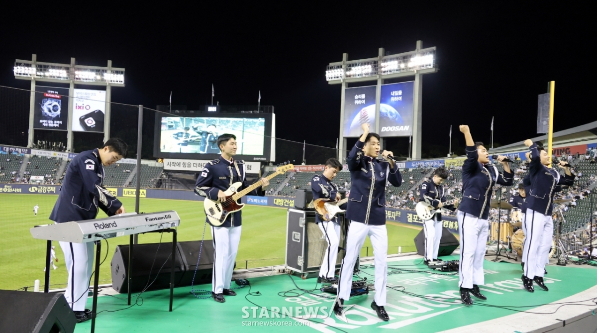 스포츠야구[포토]공군군악대 밴드부가 부르는 최강두산 응원가발행 : 2025.09.10 ・ 20:55수정 : 2025.09.10 ・ 21:07잠실=강영조 선임기자공군군악대 밴드부가 10일 잠실구장에서 열리는 2025KBO리그 두산베어스와 LG트윈스 경기 5회말이 끝나자 두산 응원석에서 두산의 응원가를 밴드음악으로 열창하고 있다. 2025.09.10.<저작권자 © 스타뉴스, 무단전재 및 재배포 금지>두산밴드공군군악대응원가잠실추천 기사강영조 선임기자기자홈좋아요 스포츠-야구의 인기 급상승 뉴스스포츠-야구의 최신 뉴스