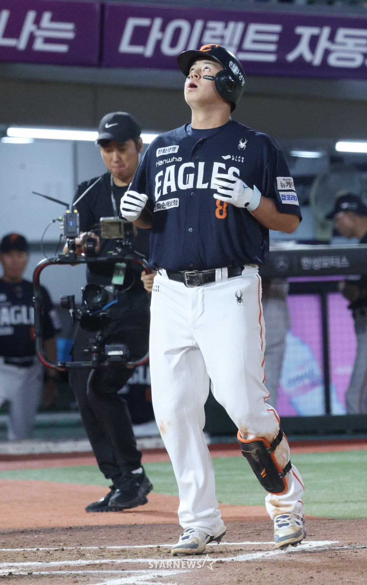 스포츠야구[포토] 노시환 '8회 쐐기 투런포'발행 : 2025.09.10 ・ 20:59부산=김진경 대기자2025 신한 SOL Bank KBO리그 롯데 자이언츠 대 한화 이글스 경기가 10일 부산 사직야구장에서 열렸다.한화 노시환이 8회초 2사 1루에서 중월 2점 홈런을 날리고 홈인하고 있다.<저작권자 © 스타뉴스, 무단전재 및 재배포 금지>프로야구KBO우취우천취소나승엽박세웅추천 기사김진경 대기자기자홈좋아요 스포츠-야구의 인기 급상승 뉴스스포츠-야구의 최신 뉴스