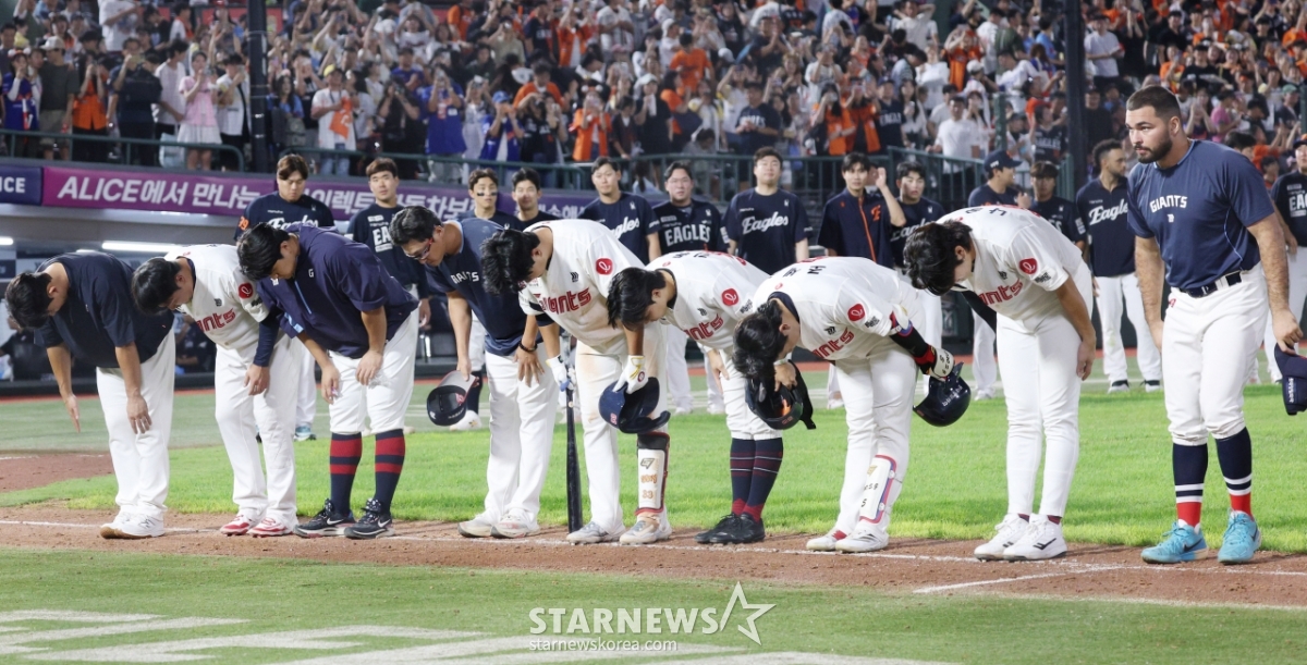 스포츠야구[포토] 5연패 롯데 짠하게 보는 독수리 군단발행 : 2025.09.10 ・ 21:32부산=김진경 대기자2025 신한 SOL Bank KBO리그 롯데 자이언츠 대 한화 이글스 경기가 10일 부산 사직야구장에서 열렸다.롯데 선수들이 한화에 0-13으로 패배하며 5연패한 후 응원단에 인사하고 있다.<저작권자 © 스타뉴스, 무단전재 및 재배포 금지>프로야구KBO우취우천취소나승엽박세웅추천 기사김진경 대기자기자홈좋아요 스포츠-야구의 인기 급상승 뉴스스포츠-야구의 최신 뉴스