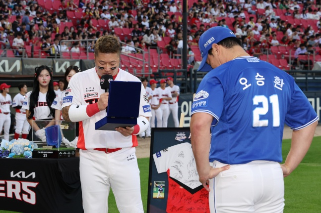 그중에서도 최형우는 또 달랐다. 최형우는 삼성 시절 오승환과 통합 우승 4연패의 주역으로서 함께했던 팀 동료였다. 그래서였을까. KIA 구단과 별개로 따로 감사패를 마련한 최형우는 직접 준비한 "사랑하는 나의 형님"으로 시작하는 문구를 읽으면서 눈물을 흘려 주위를 당황케 했다.
