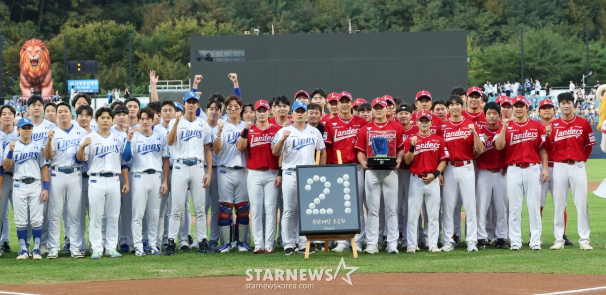 스포츠야구[포토] 오승환 은퇴투어, 영원하라 21번발행 : 2025.09.11 ・ 18:49대구=김진경 대기자2025 신한 SOL Bank KBO리그 삼성 라이온즈 대 SSG 랜더스 경기가 11일 대구삼성라이온즈파크에서 열렸다.경기에 앞서 삼성 오승환 은퇴 투어 행사가 진행됐다.오승환이 행사 후 SSG 선수들과 기념촬영을 하고 있다.이번 시즌을 끝으로 현역 생활을 마무리하는 오승환은 상대 팀 선수들과 작별 인사를 하는 은퇴 투어를 진행 중이다.<저작권자 © 스타뉴스, 무단전재 및 재배포 금지>프로야구KBO우취구자욱박지만_감독이숭용_감독추천 기사김진경 대기자기자홈좋아요 스포츠-야구의 인기 급상승 뉴스스포츠-야구의 최신 뉴스