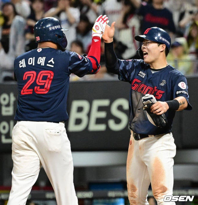 롯데는 재역전에 성공했다. 6회초 구원 등판한 최지민을 상대로 정보근이 볼넷, 대주자 장두성이 2루를 훔쳤고, 고승민이 우전 1타점 적시타로 4-3을 만들었다.