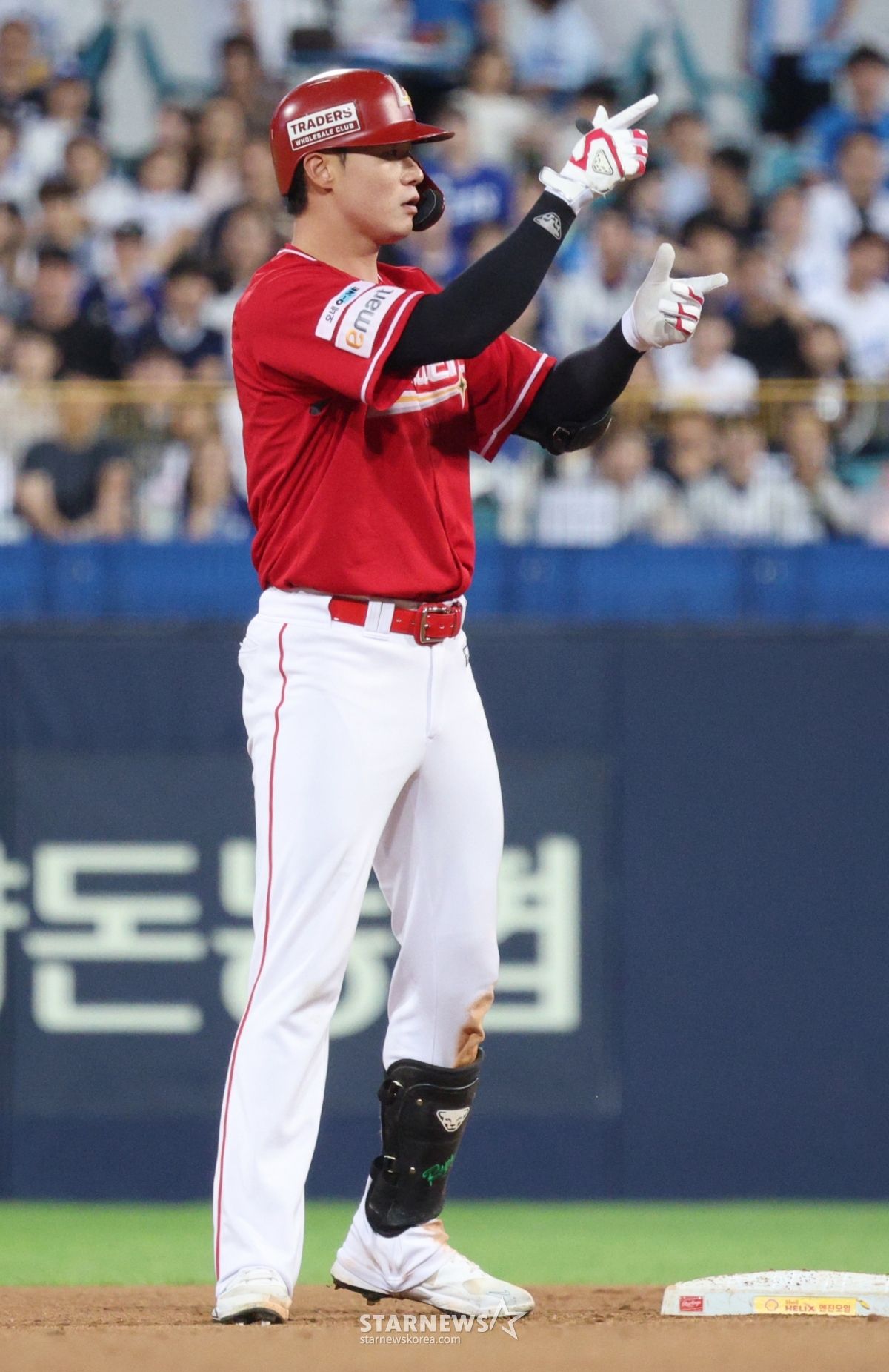스포츠야구[포토] 류효승 '빵야 세리머니'발행 : 2025.09.11 ・ 20:56대구=김진경 대기자2025 신한 SOL Bank KBO리그 삼성 라이온즈 대 SSG 랜더스 경기가 11일 대구삼성라이온즈파크에서 열렸다.SSG 류효승이 6회초 2사 1,2루에서 2타점 적시 2루타를 날리고 출루한 후 세리머니를 하고 있다.<저작권자 © 스타뉴스, 무단전재 및 재배포 금지>프로야구KBO우취구자욱박지만_감독이숭용_감독추천 기사김진경 대기자기자홈좋아요 스포츠-야구의 인기 급상승 뉴스스포츠-야구의 최신 뉴스