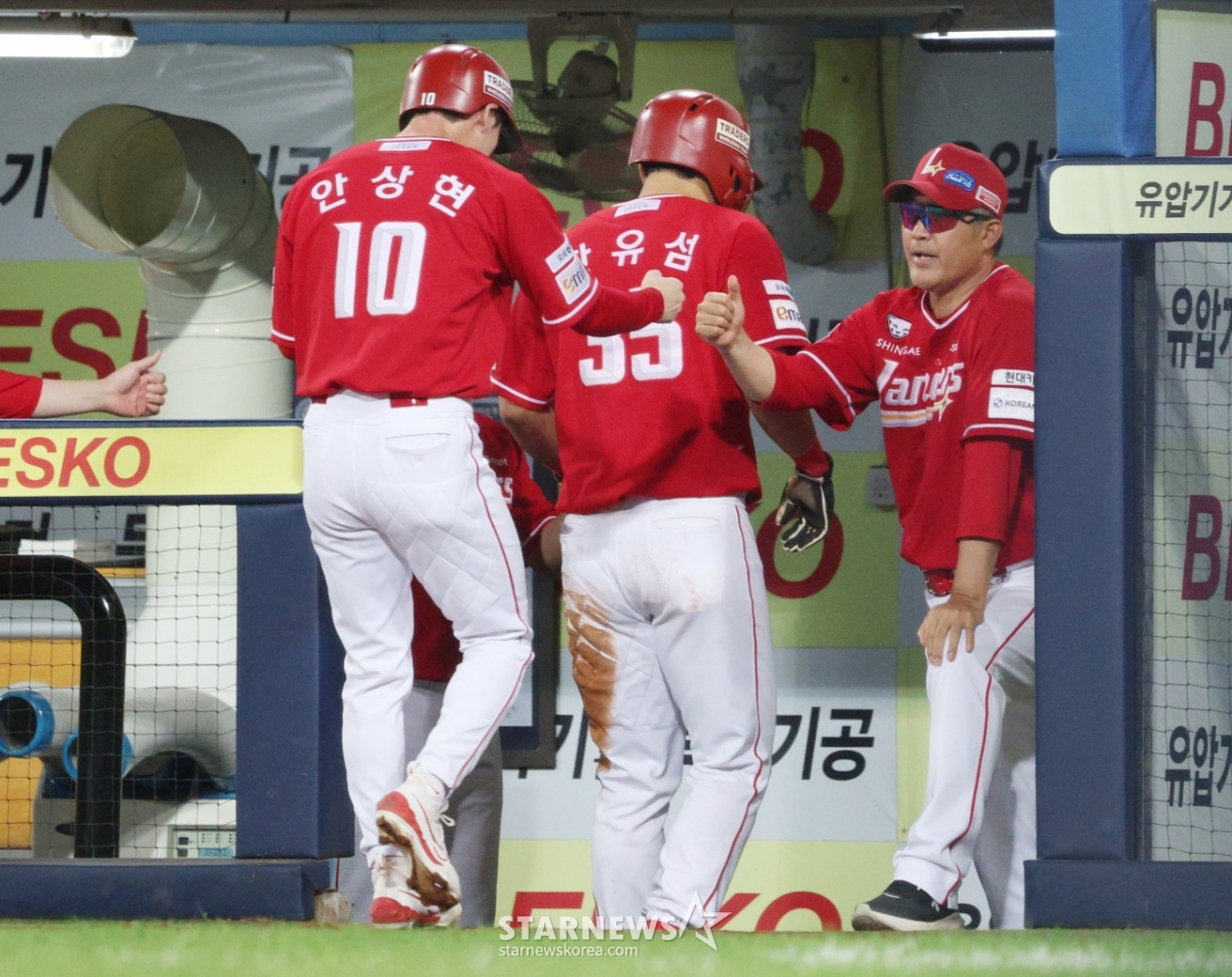스포츠야구[포토] 이숭용 감독 '질 생각 없잖아?'발행 : 2025.09.11 ・ 20:58대구=김진경 대기자2025 신한 SOL Bank KBO리그 삼성 라이온즈 대 SSG 랜더스 경기가 11일 대구삼성라이온즈파크에서 열렸다.SSG 6회초 2사 1,2루에서 류효승이 적시 2루타 때 홈을 밟은 안상현과 한유섬이 이숭용 감독의 환영을 받고 있다.<저작권자 © 스타뉴스, 무단전재 및 재배포 금지>프로야구KBO우취구자욱박지만_감독이숭용_감독추천 기사김진경 대기자기자홈좋아요 스포츠-야구의 인기 급상승 뉴스스포츠-야구의 최신 뉴스
