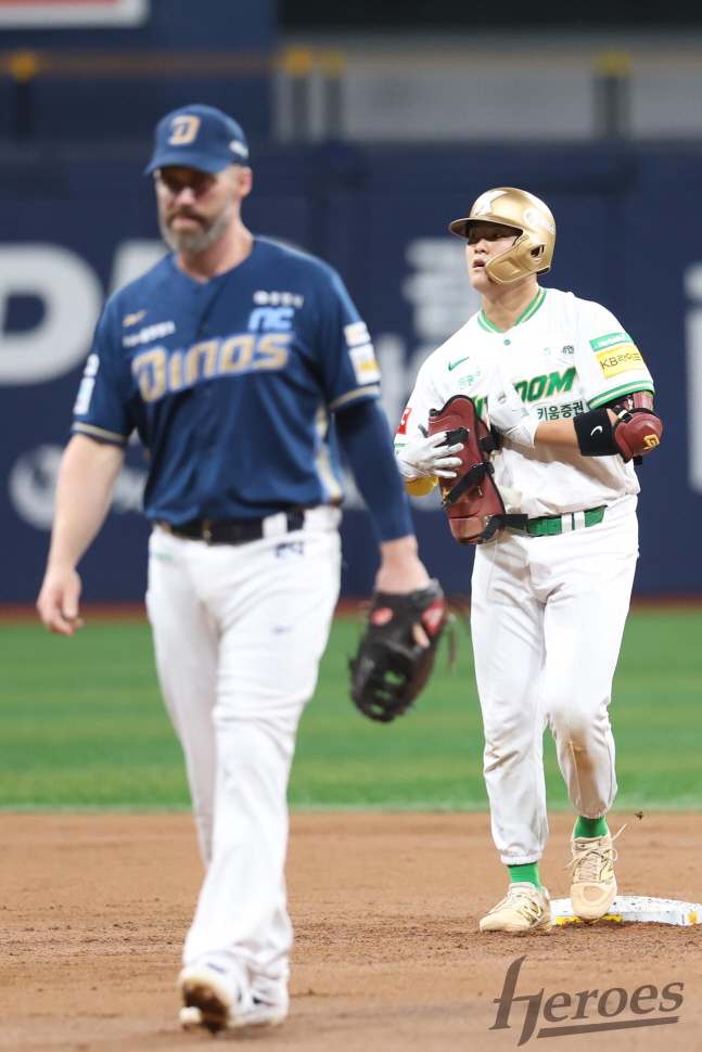 4회도 무실점으로 마친 메르세데스는 5회 2사에서 김휘집에게 볼넷을 내주고 도루까지 허용한 뒤 김주원에게 1타점 적시타를 맞고 첫 실점을 했다. 포수 김건희가 도우미로 나섰다. 도루를 시도하는 김주원을 레이저 송구로 잡아내며 이닝을 마칠 수 있게 도왔다.