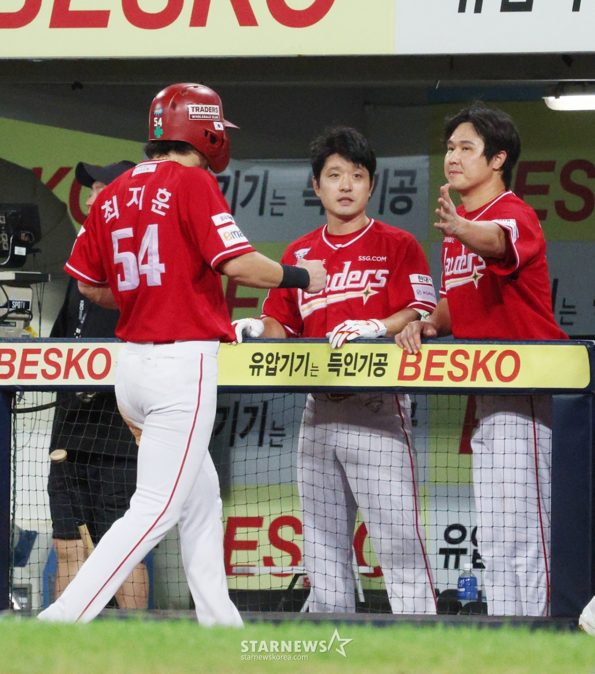 스포츠야구[포토] 최정 '최지훈 굿아이 좋았어'발행 : 2025.09.11 ・ 21:11수정 : 2025.09.11 ・ 21:14대구=김진경 대기자2025 신한 SOL Bank KBO리그 삼성 라이온즈 대 SSG 랜더스 경기가 11일 대구삼성라이온즈파크에서 열렸다.8회초 밀어내기 볼넷으로 동점을 만든 SSG 최지훈이 고명준의 내야땅볼 때 포스아웃된 후 더그아웃에서 최정의 환영을 받고 있다.<저작권자 © 스타뉴스, 무단전재 및 재배포 금지>프로야구KBO우취구자욱박지만_감독이숭용_감독추천 기사김진경 대기자기자홈좋아요 스포츠-야구의 인기 급상승 뉴스스포츠-야구의 최신 뉴스