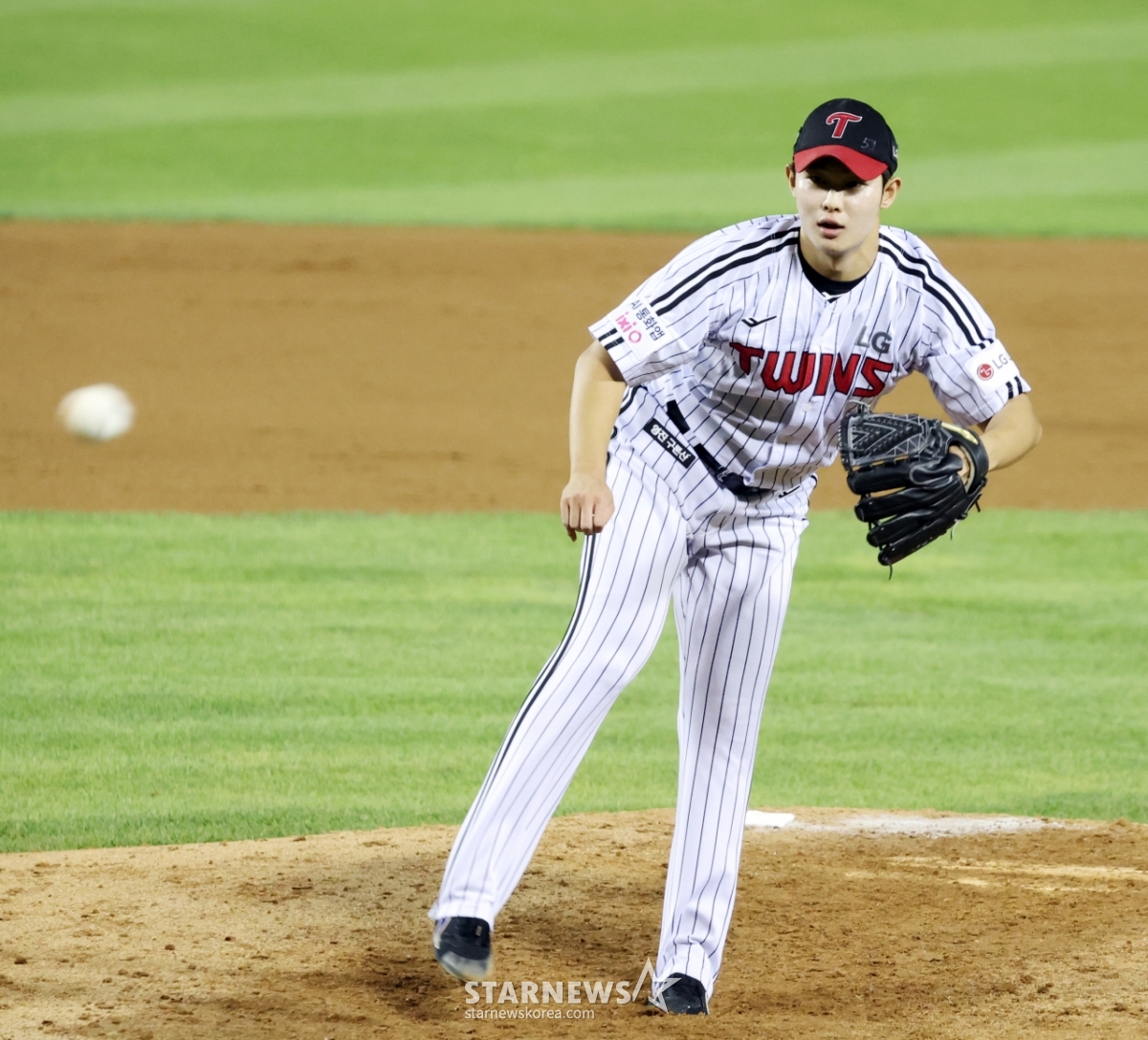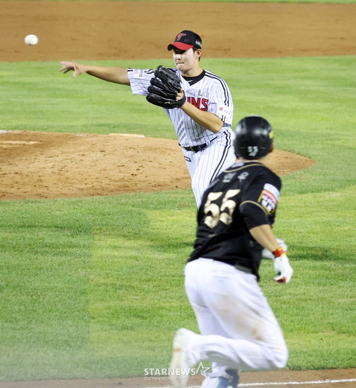스포츠야구[포토]'김영우의 야수선택'발행 : 2025.09.11 ・ 21:30잠실=강영조 선임기자LG 우완불펜 김영우가 11일 잠실구장에서 열리는 2025KBO리그 KT위즈와 LG트윈스 경기 7회초 무사 1,3루 강현우의 번트를 잡아 홈으로 송구하고 있다. 3루주자 황재균은 홈에서 세이프. 김영우는 7회초 4-4 동점을 허용했다 2025. 09.11.<저작권자 © 스타뉴스, 무단전재 및 재배포 금지>김영우잠실위즈트윈스강현우황재균추천 기사강영조 선임기자기자홈좋아요 스포츠-야구의 인기 급상승 뉴스스포츠-야구의 최신 뉴스