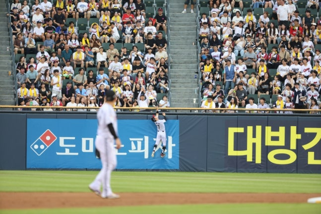 '피자 간접광고'라는 이야기까지 들었던 박해민(35·LG 트윈스)의 슈퍼캐치가 8월의 '씬-스틸러상'에 선정됐다.
