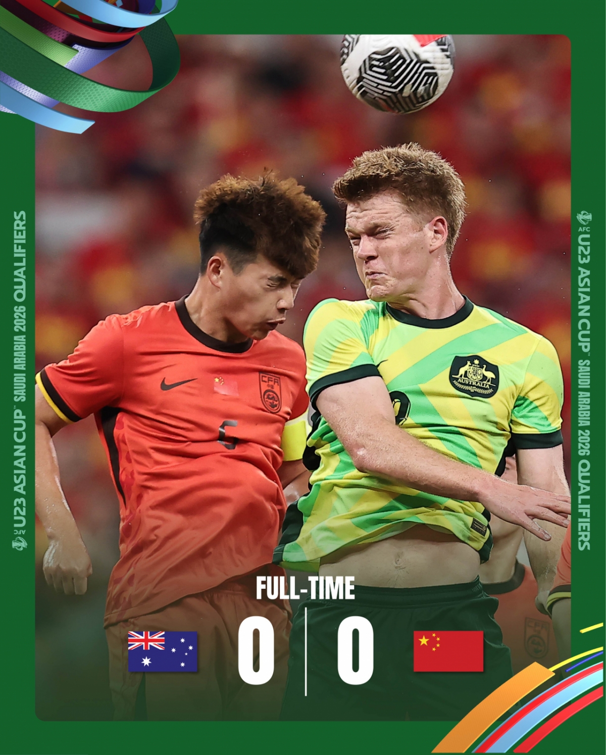 중국 매체 '시나스포츠'는 13일(한국시간) "중국과 호주가 0-0으로 비겼고 두 팀 모두 내년 사우디아라비아에서 열리는 아시아축구연맹(AFC) U-23 아시안컵 본선행을 확정했다"면서 "문제는 내용이었다. 두 팀이 의도적으로 공을 돌리며 시간을 소모했다는 지적이 해외 팬들 사이에서 제기됐다"고 보도했다.