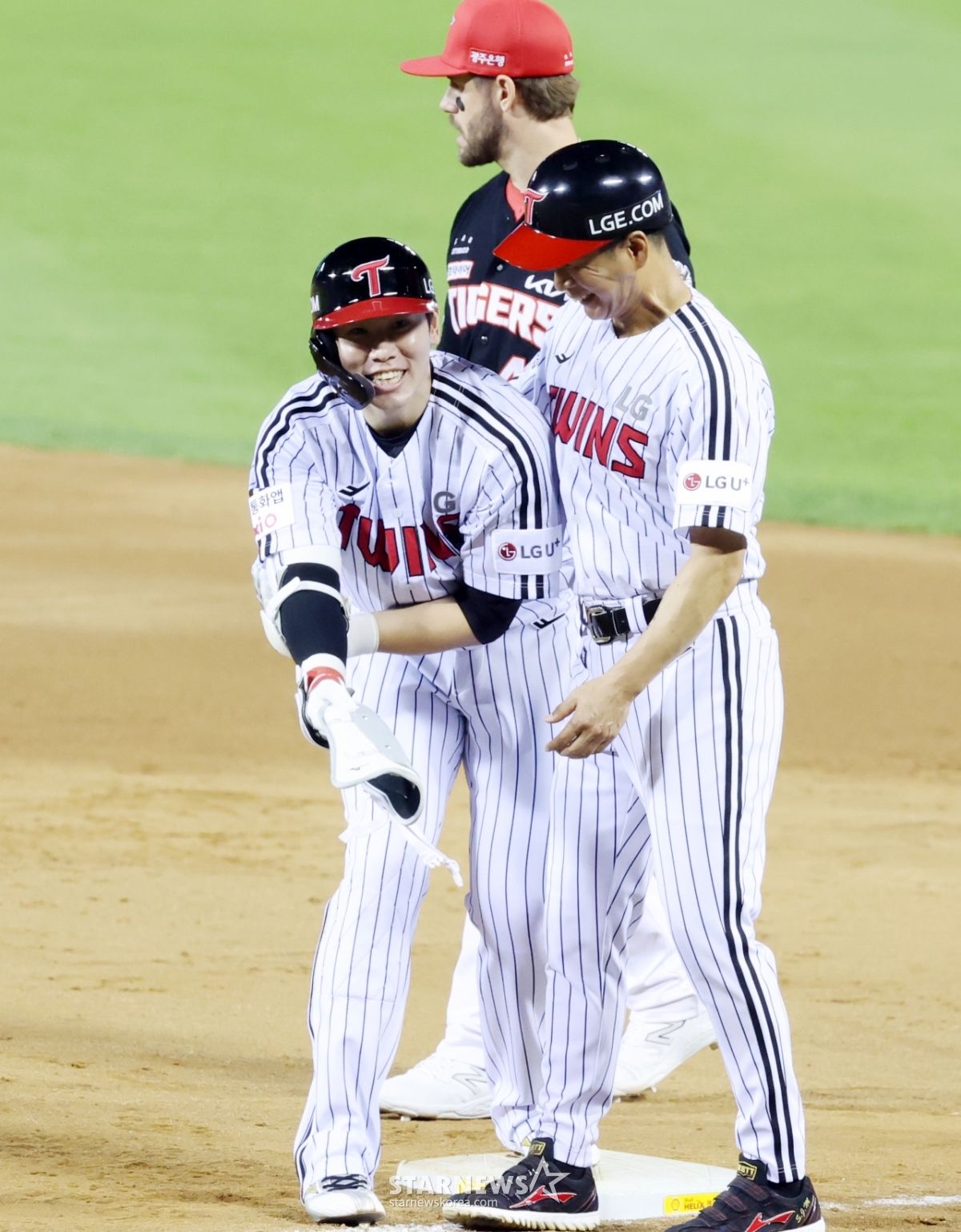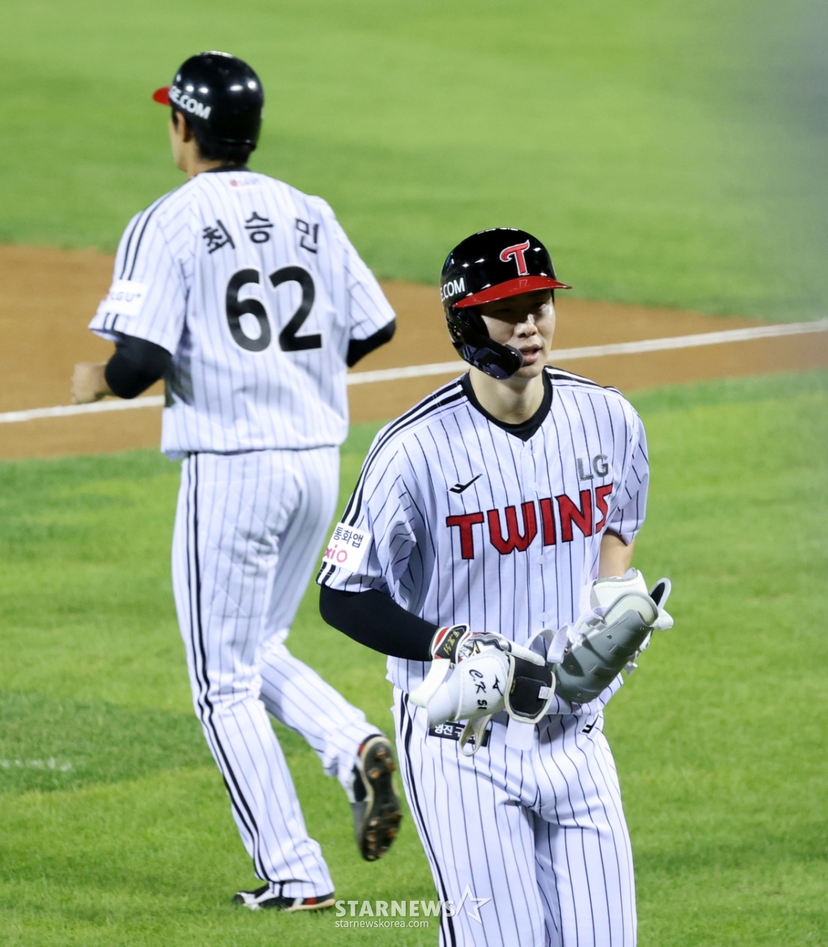 스포츠야구[한번에쓱]'복귀 첫타석도 그냥 못간다!' 안타신고 홍창기발행 : 2025.09.13 ・ 19:19잠실=강영조 선임기자LG 홍창기가 13일 잠실구장에서 열리는 2025KBO리그 LG트윈스와 KIA타이거즈 경기 7회말 대타로 나와 성영탁을 상대로 안타를 터트리며 복귀신고를 했다. 안타로 출루한 홍창기는 대주자 최승민으로 바로 교체됐다. 2025. 09.13.<저작권자 © 스타뉴스, 무단전재 및 재배포 금지>홍창기안타복귀신고잠실트윈스추천 기사강영조 선임기자기자홈좋아요 스포츠-야구의 인기 급상승 뉴스스포츠-야구의 최신 뉴스