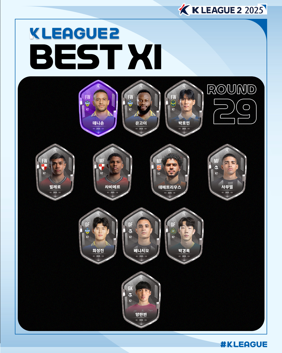 [ 하나은행 K리그2 2025 29R MVP, 베스트 팀/매치, 베스트11 ]